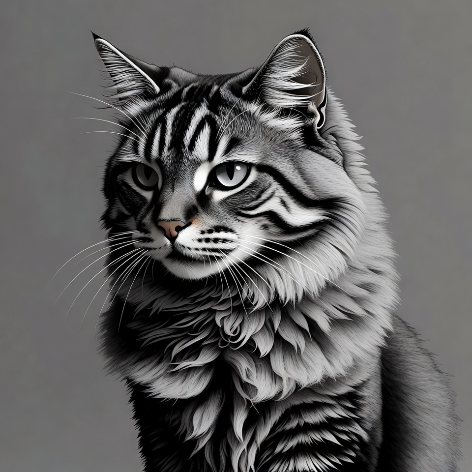 animal, art, background, cat, creative, design, details, drawing, expression, eyes, face, features, fluffy, fur, lines, portrait, static, style, texture, whiskers