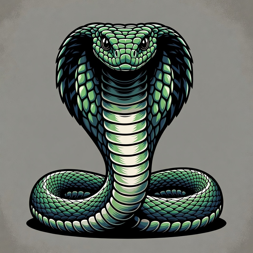 animal, artistry, attention, close-up, cobra, creature, danger, design, detail, green, hood, illustration, nature, pose, predator, reptile, scales, snake, venom, wildlife