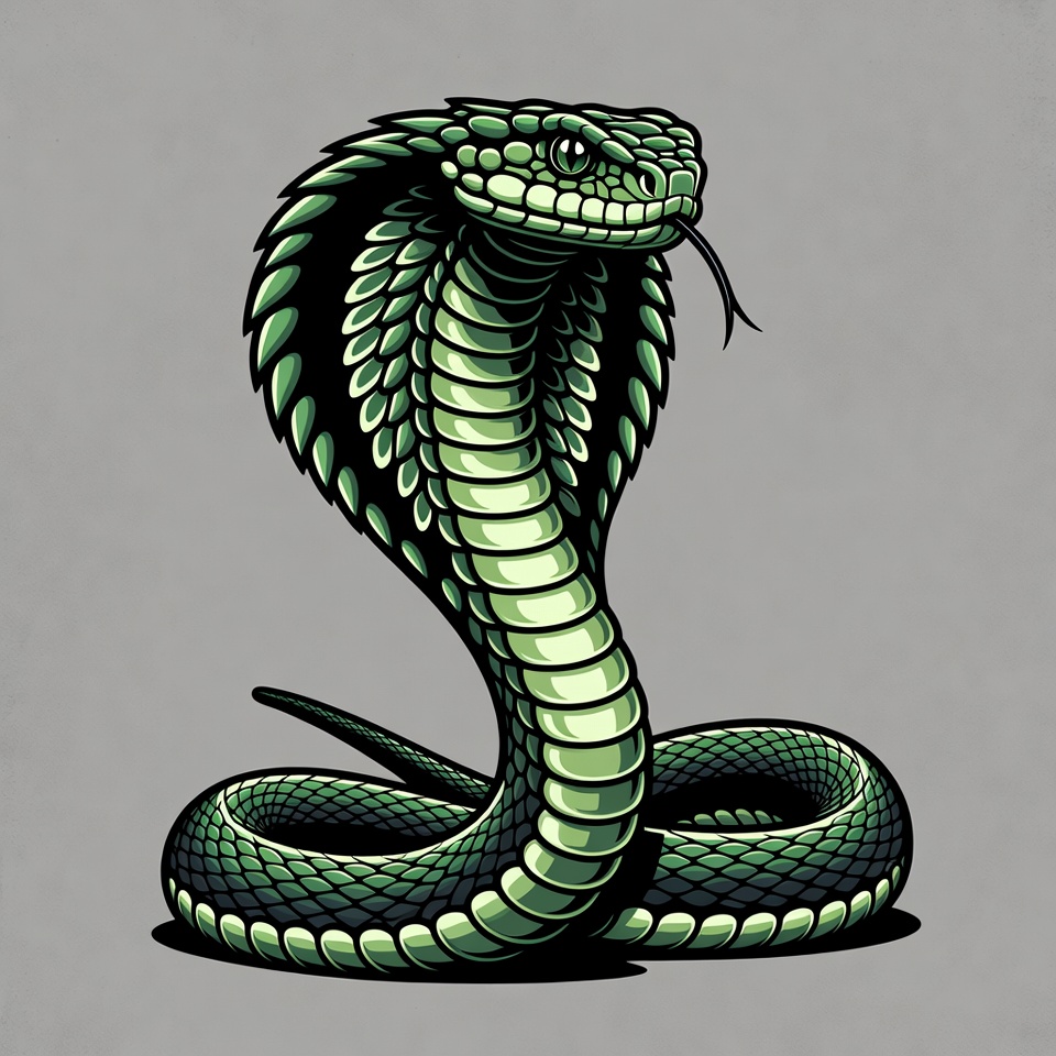 animal, art, black, danger, fangs, forked tongue, green, habitat, illustration, nature, pose, predator, reptile, scales, serpent, snake, striking, venom, wilderness, wildlife