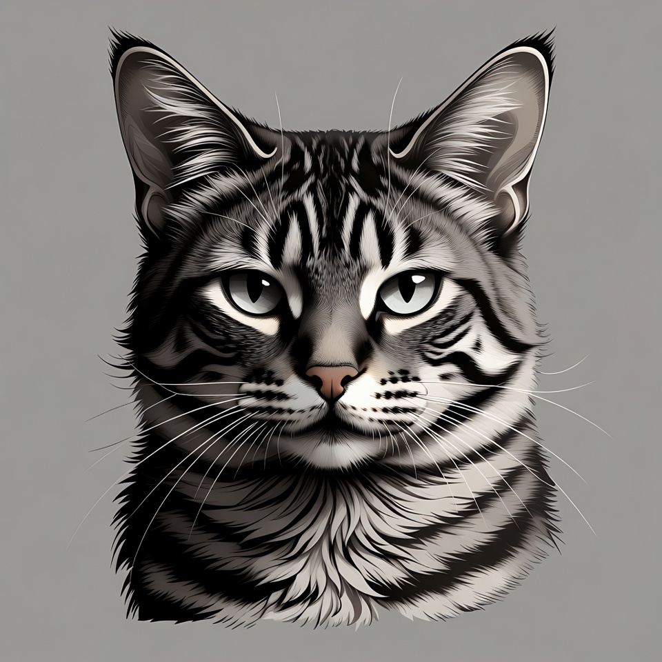 animal, art, cat, close-up, detailed, domestic, eyes, face, features, feline, head, illustration, markings, nature, pet, portrait, sketch, tabby, whiskers, wildlife