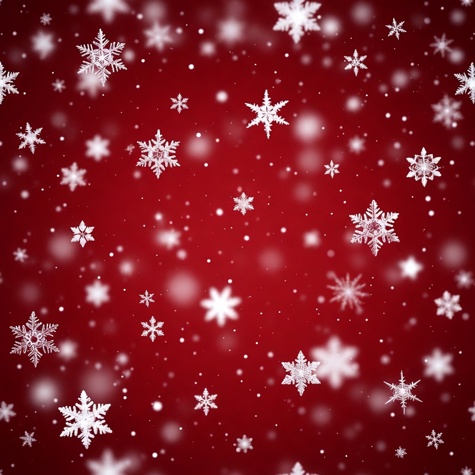 atmospheric, beauty, celebration, cold weather, contrast, decoration, depth, design, falling, festive, holiday, nature, particles, patterns, red background, scene, seasonal, snowflakes, texture, winter