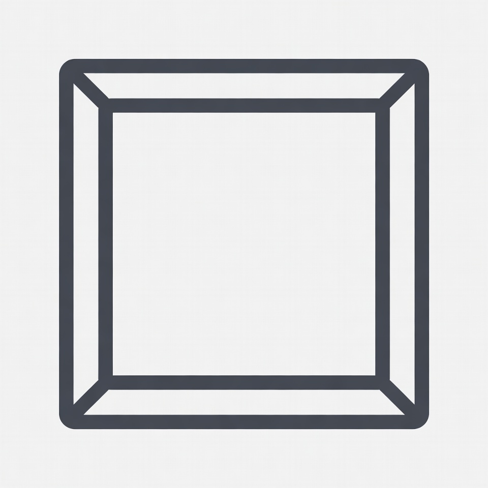 A blank square outline sits on a white background. The design is simple, focusing on the shape without any other elements.