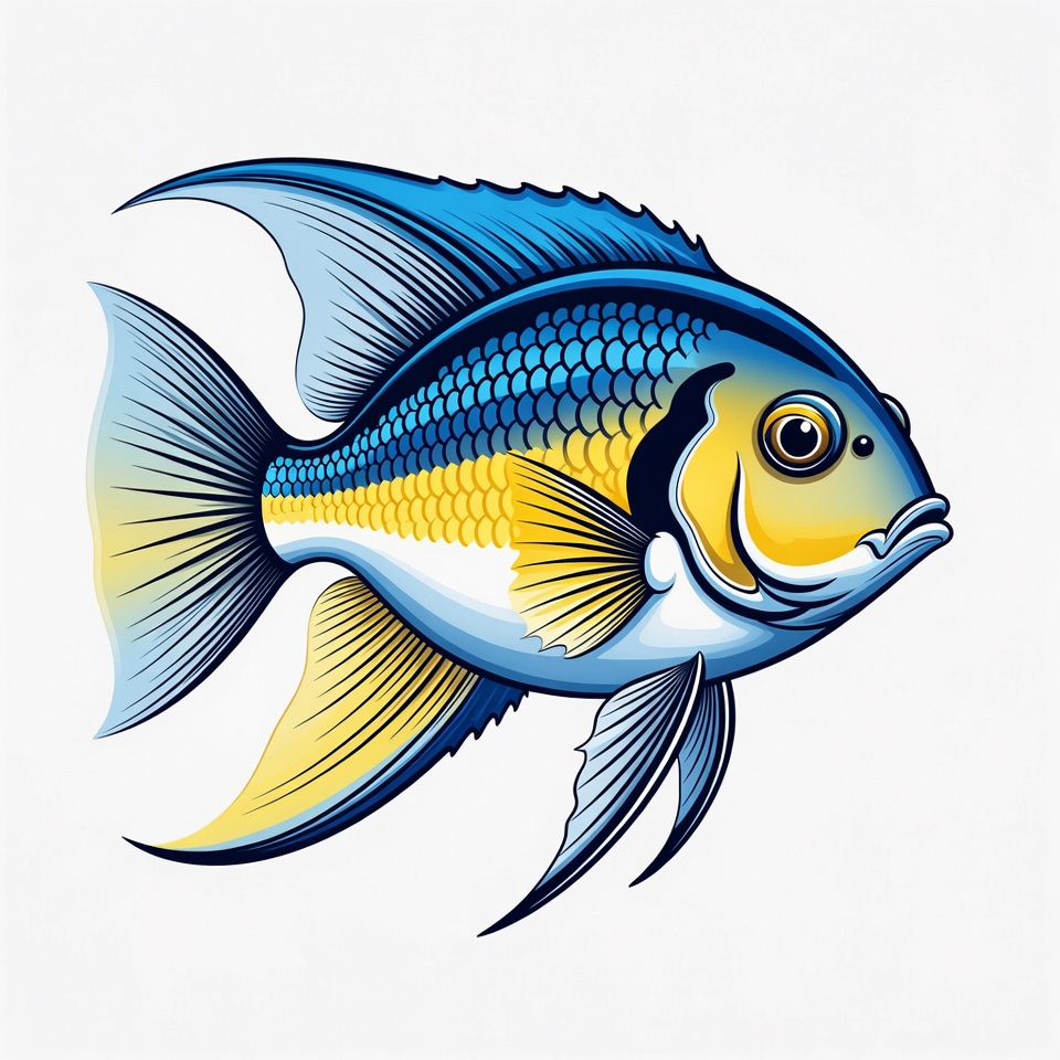 animal, aquatic, blue, colors, creatures, fins, fish, habitat, illustration, lake, marine, nature, ocean, river, scales, swimming, tropical, water, wildlife, yellow