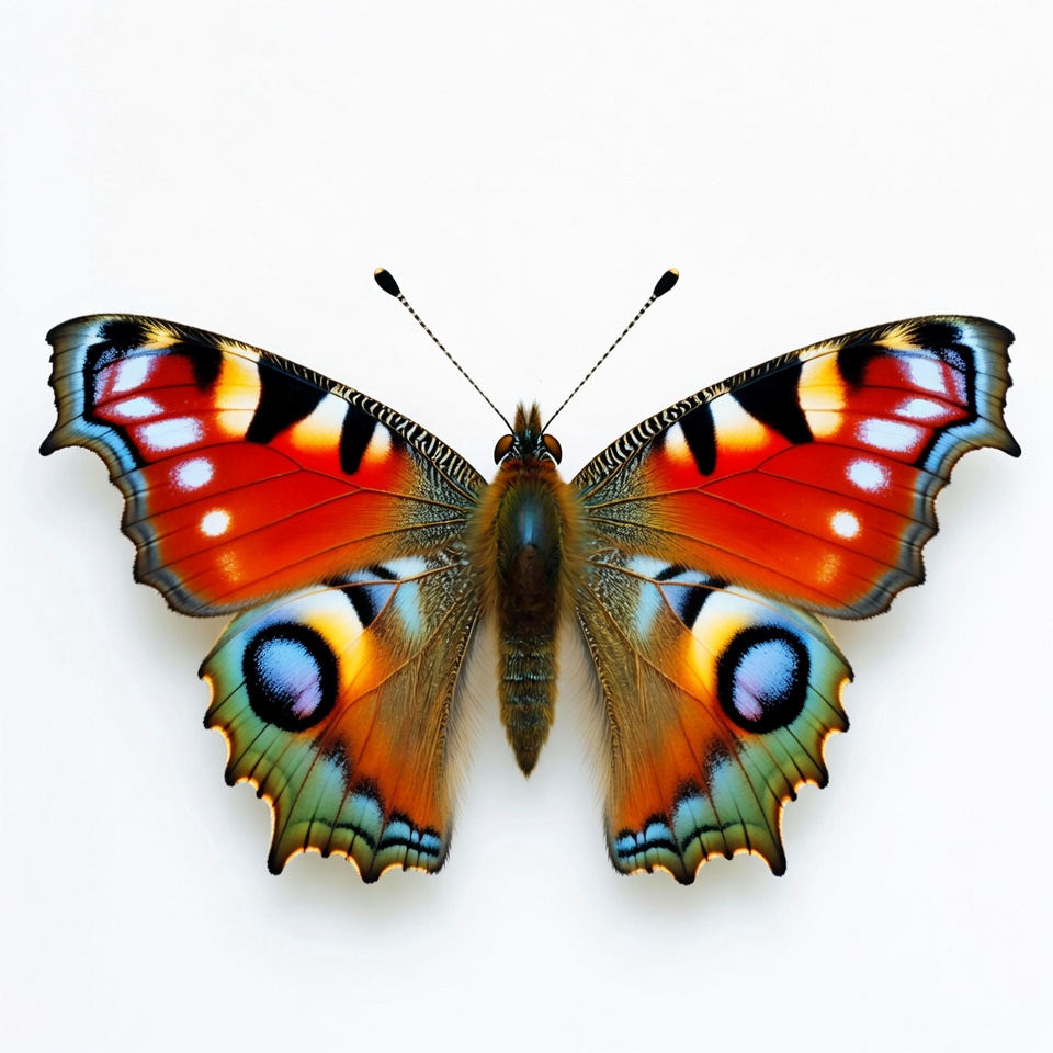 Butterfly displays bright colors and patterns while resting on a light background in a simple setting.