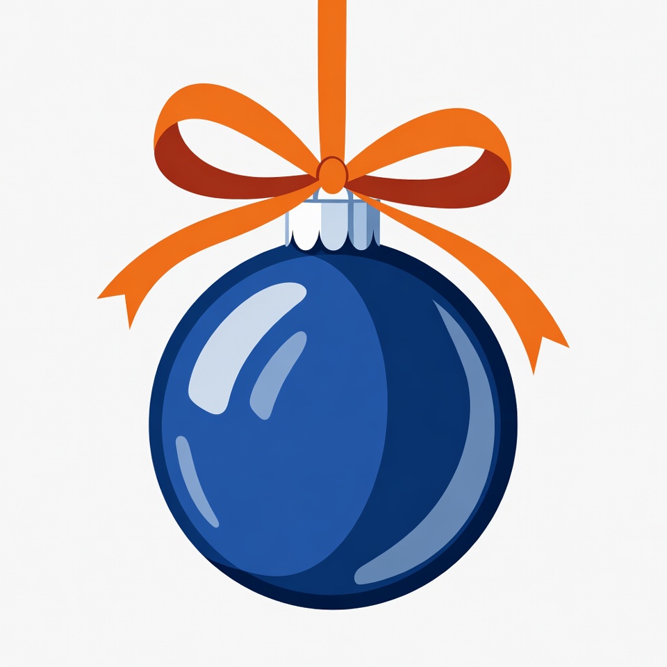 Blue ornament with orange ribbon hanging
