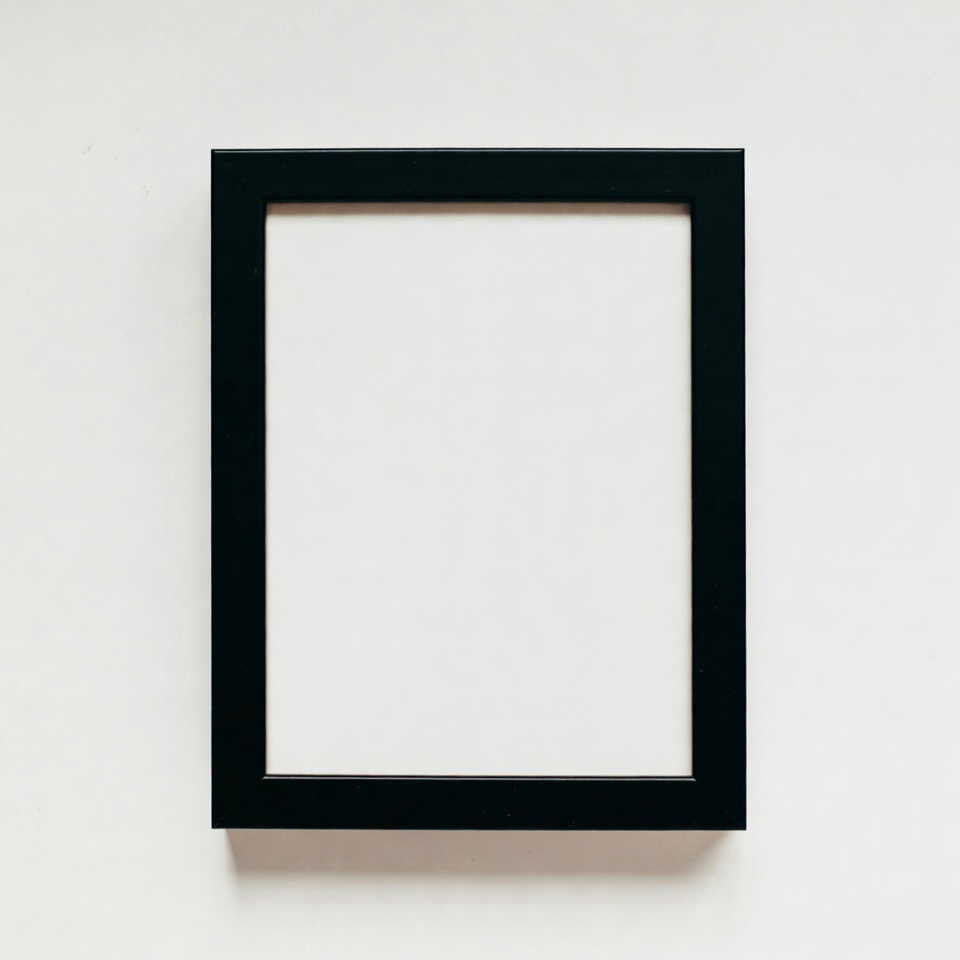 A black rectangular frame sits on a plain white background, showing no picture or content inside. The frame highlights the empty space.