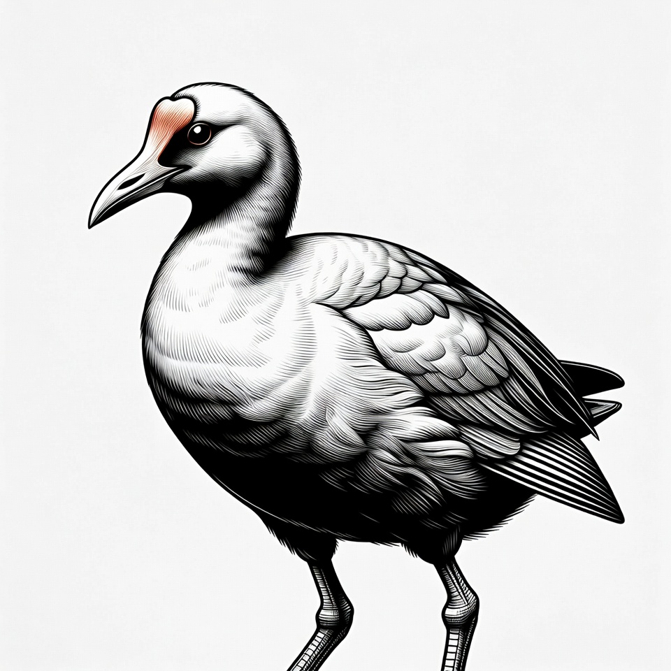 alert, animal, art, beak, bird, black, creature, design, drawing, feathers, illustration, legs, nature, observation, outdoor, patterned, pose, standing, white, wildlife