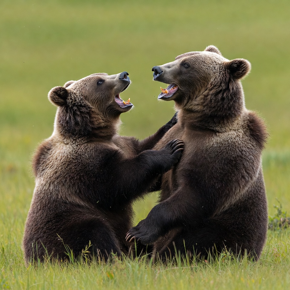 animals, bears, communication, ecosystem, environment, field, forest, fun, grass, grizzly, habitat, interaction, nature, outdoors, paws, playful, playing, summer, wildlife, wildlife behavior