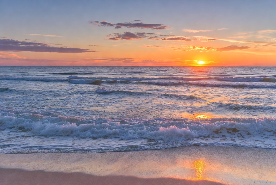 atmosphere, beach, clouds, coastline, colors, daylight, dusk, evening, horizon, nature, ocean, peace, reflection, scenery, sea, shore, sky, sunset, water, waves
