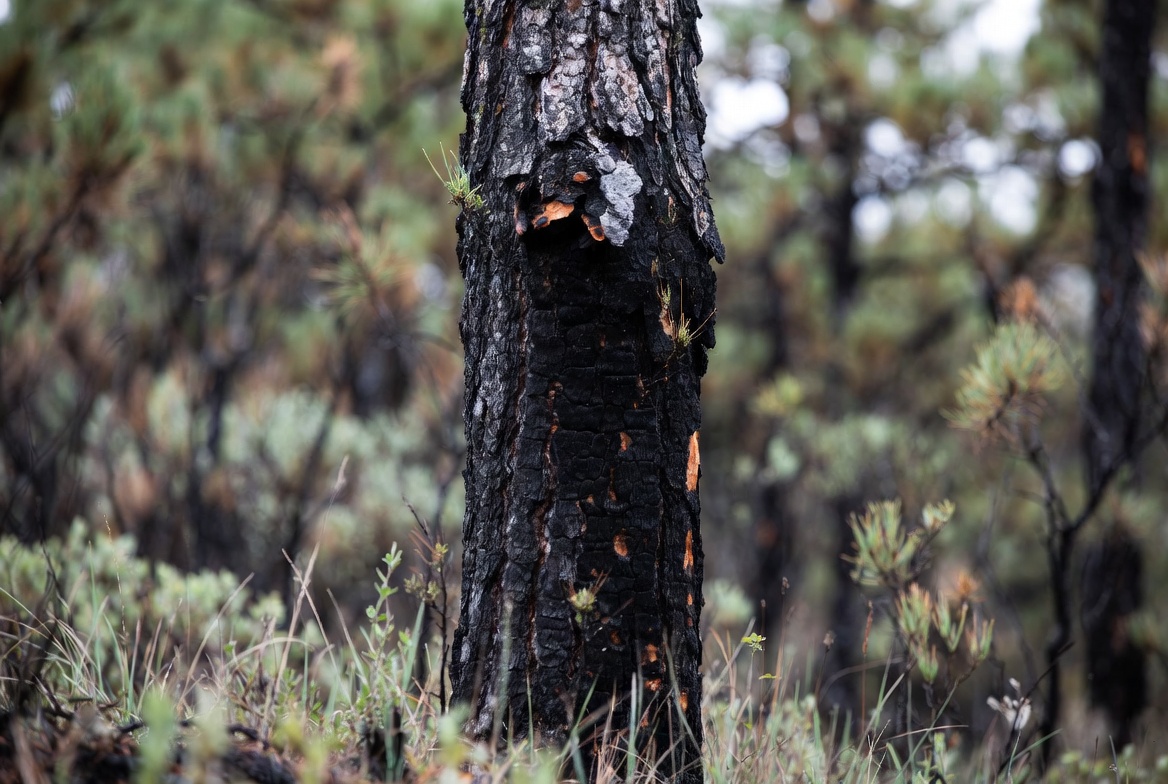 bark, burned, damaged, dry, ecosystem, environment, fire, flora, forest, green, growth, landscape, nature, plants, recovery, tree, trunk, wild, wilderness, wood