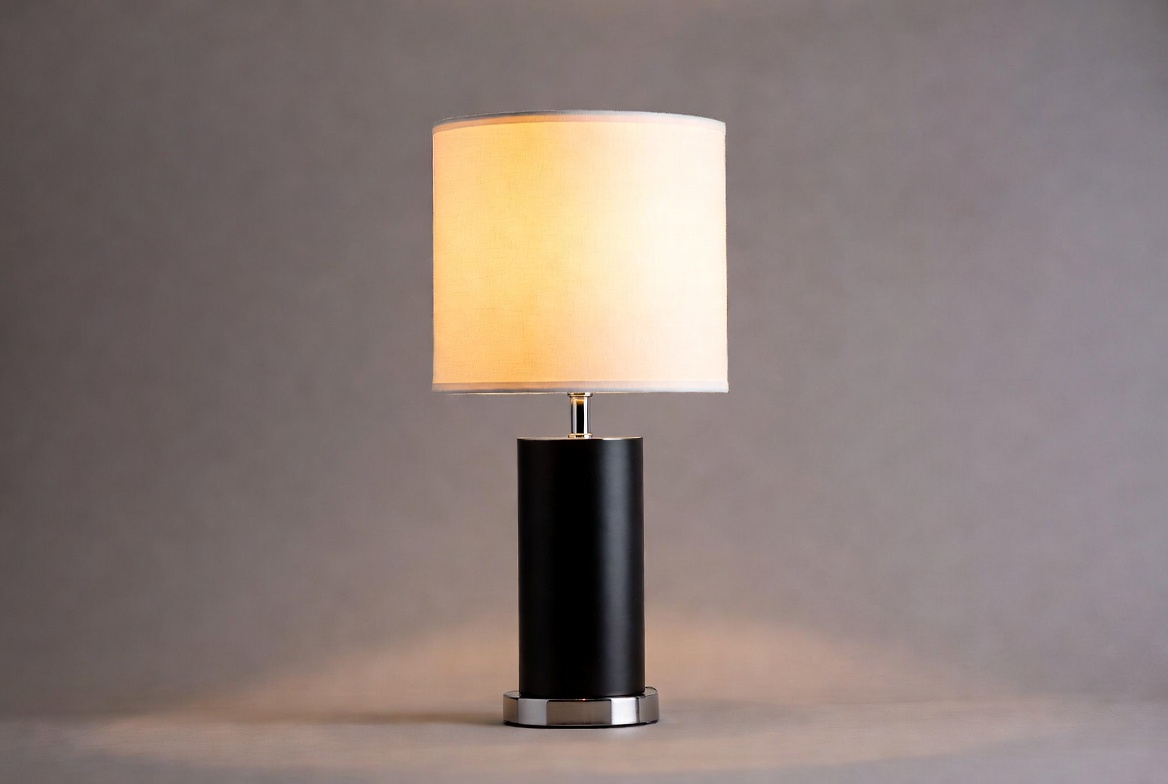 ambient, black, cozy, cylinder, decor, design, functionality, furniture, home, illumination, interior, lamp, lighting, modern, room, shade, simple, structure, style, table