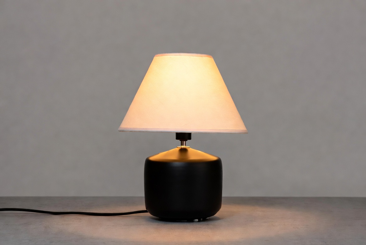 base, corner, cozy, decor, design, electrical, fabric, home, illumination, indoor, lamp, light, modern, round, shade, simple, surface, table, warm, workspace