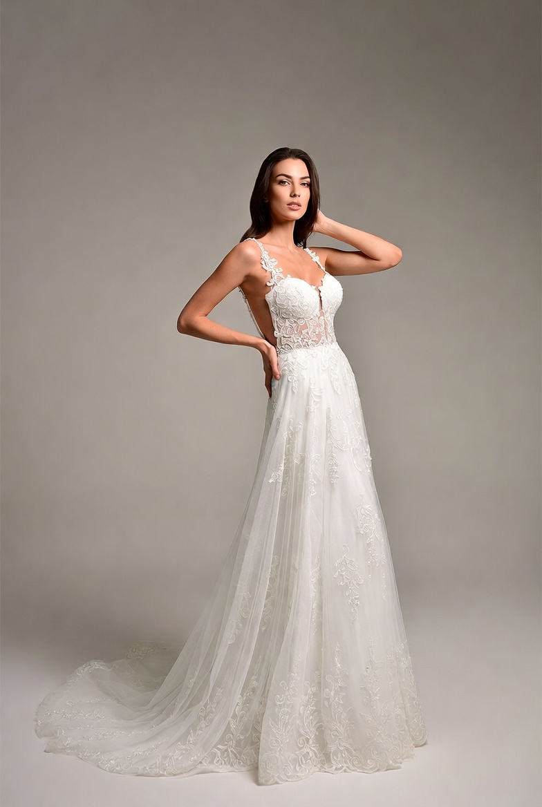 Model poses in bridal gown