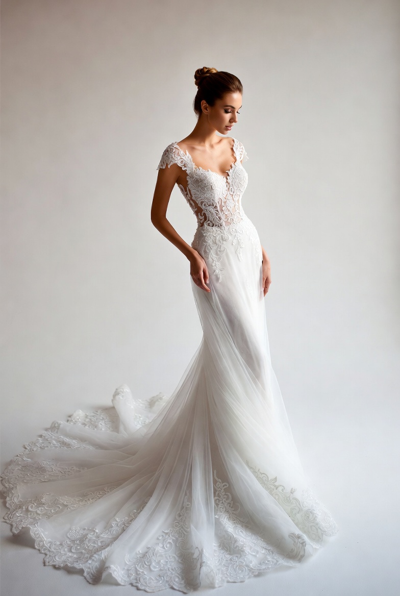 beauty, bridal gown, design, dress, elegance, fabric, fashion, fitting, gown details, hairstyle, lace, light, model, photoshoot, posing, silhouette, standing, studio, wedding, woman