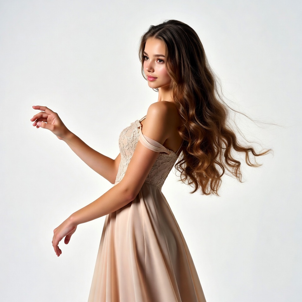 beauty, day, dress, elegance, fashion, female, figure, hairstyle, leisure, light, long hair, model, movement, portrait, pose, skin, soft, studio, style, sunlight