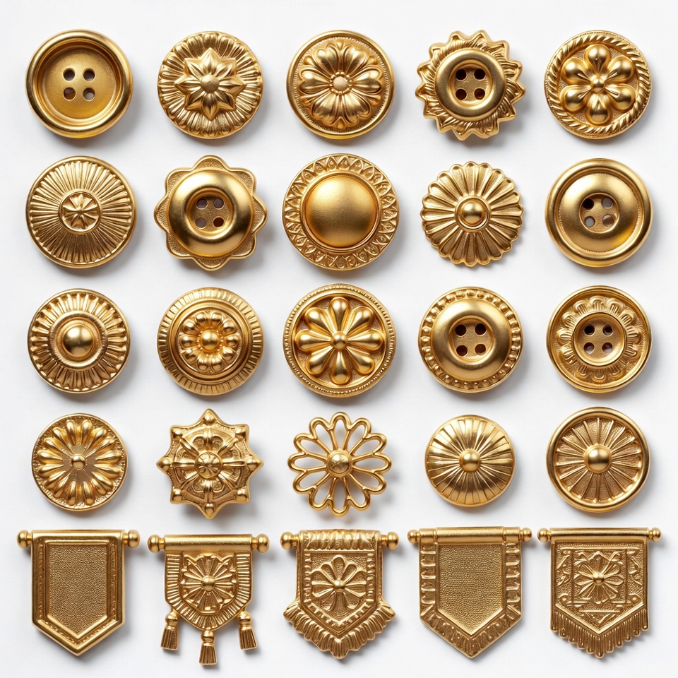 Golden buttons in various designs