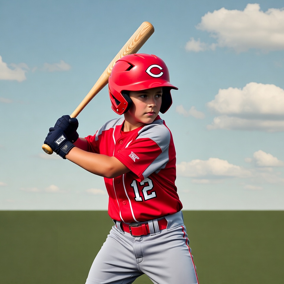 action, baseball, bat, boy, child, competition, equipment, field, game, helmet, number twelve, outdoor, play, player, ready, sports, team, training, uniform, youth
