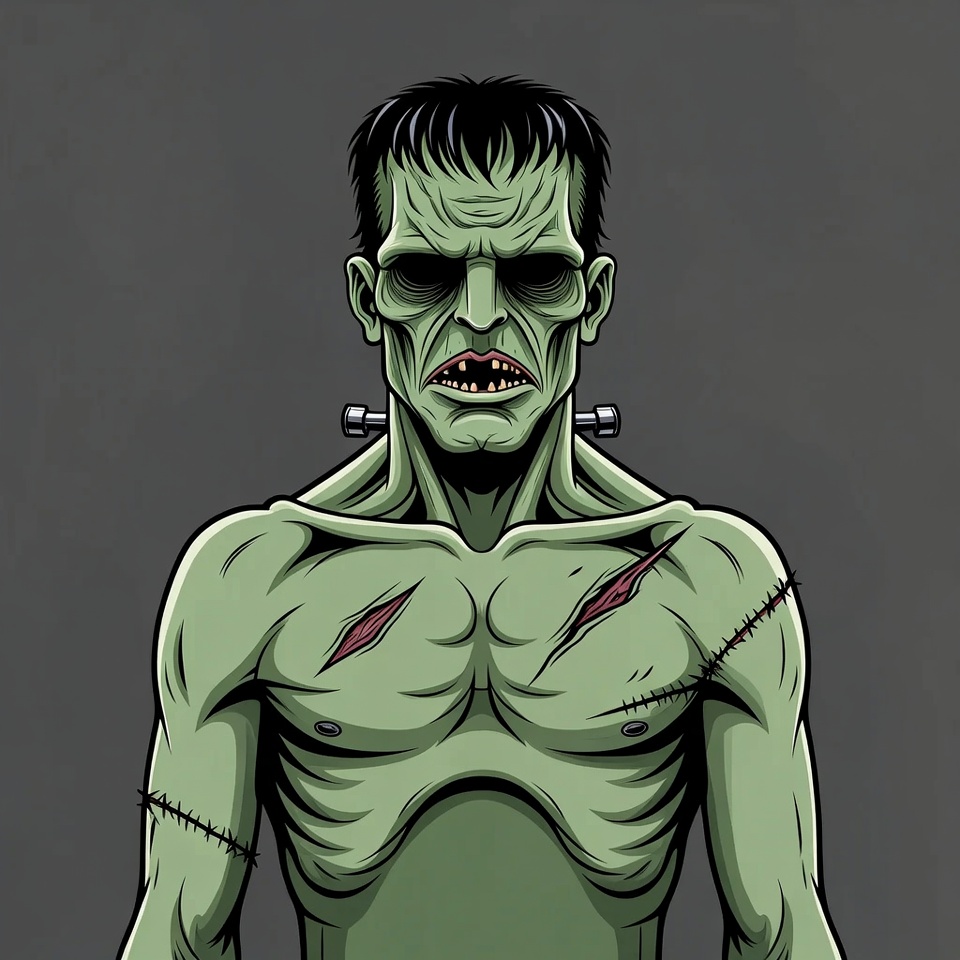 Frankenstein character design on gray background