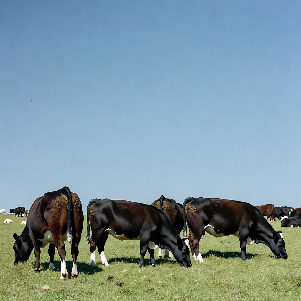 agriculture, animals, beef, blue sky, cows, dairy, environment, farming, field, grass, grazing, herd, landscape, livestock, nature, outdoors, pasture, rural, sunny, tranquility