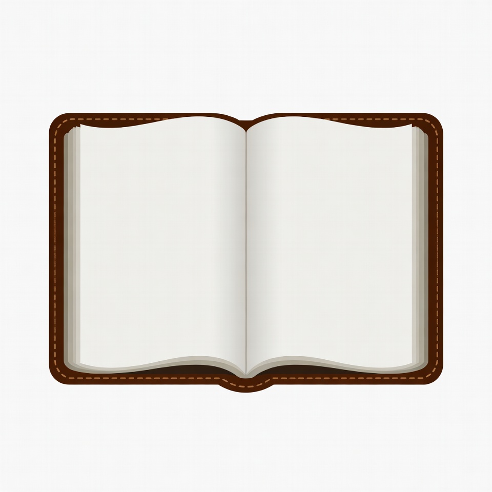 An open book displays blank pages. It is placed on a plain background. There is no text or illustrations visible on the pages.
