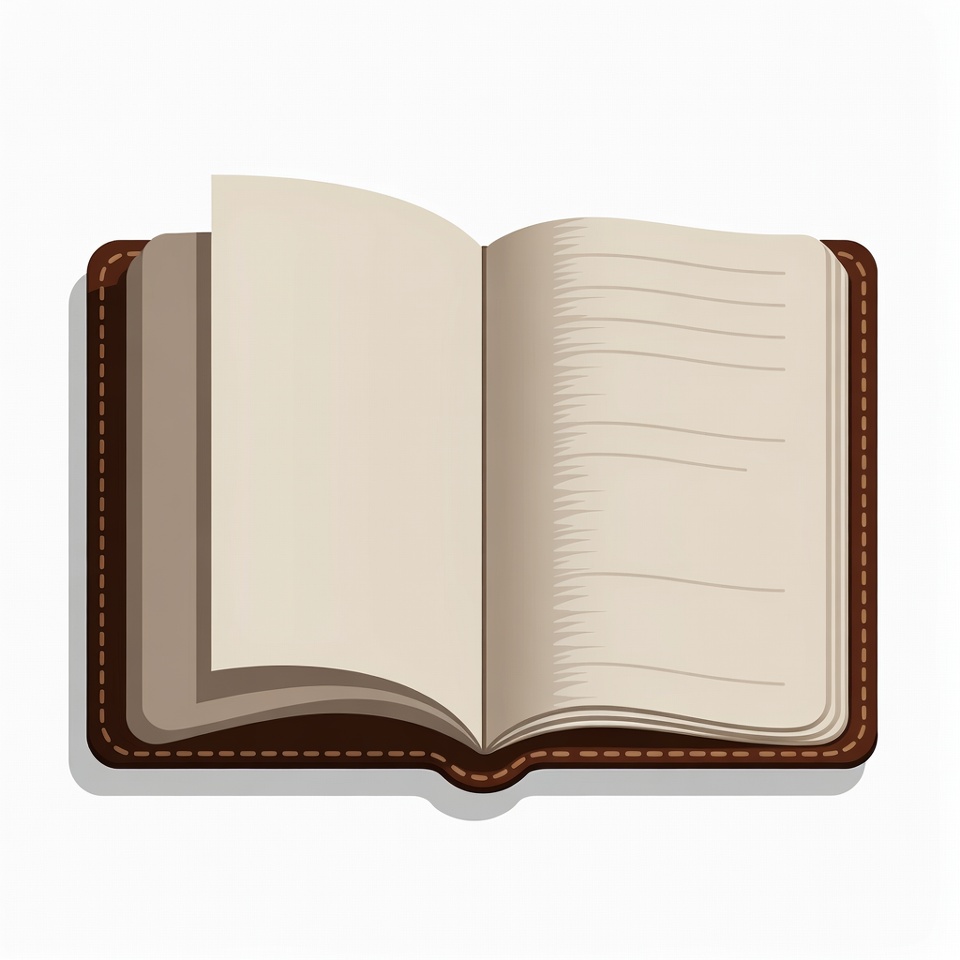 An open book lies on a flat surface showing empty pages ready for writing or drawing. It is a simple and clean design with no text.