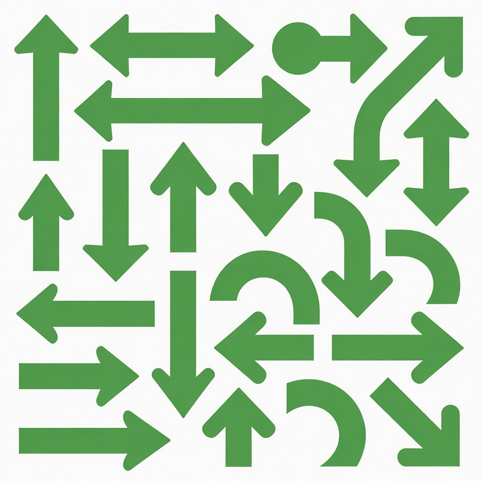 Green arrows pointing various directions