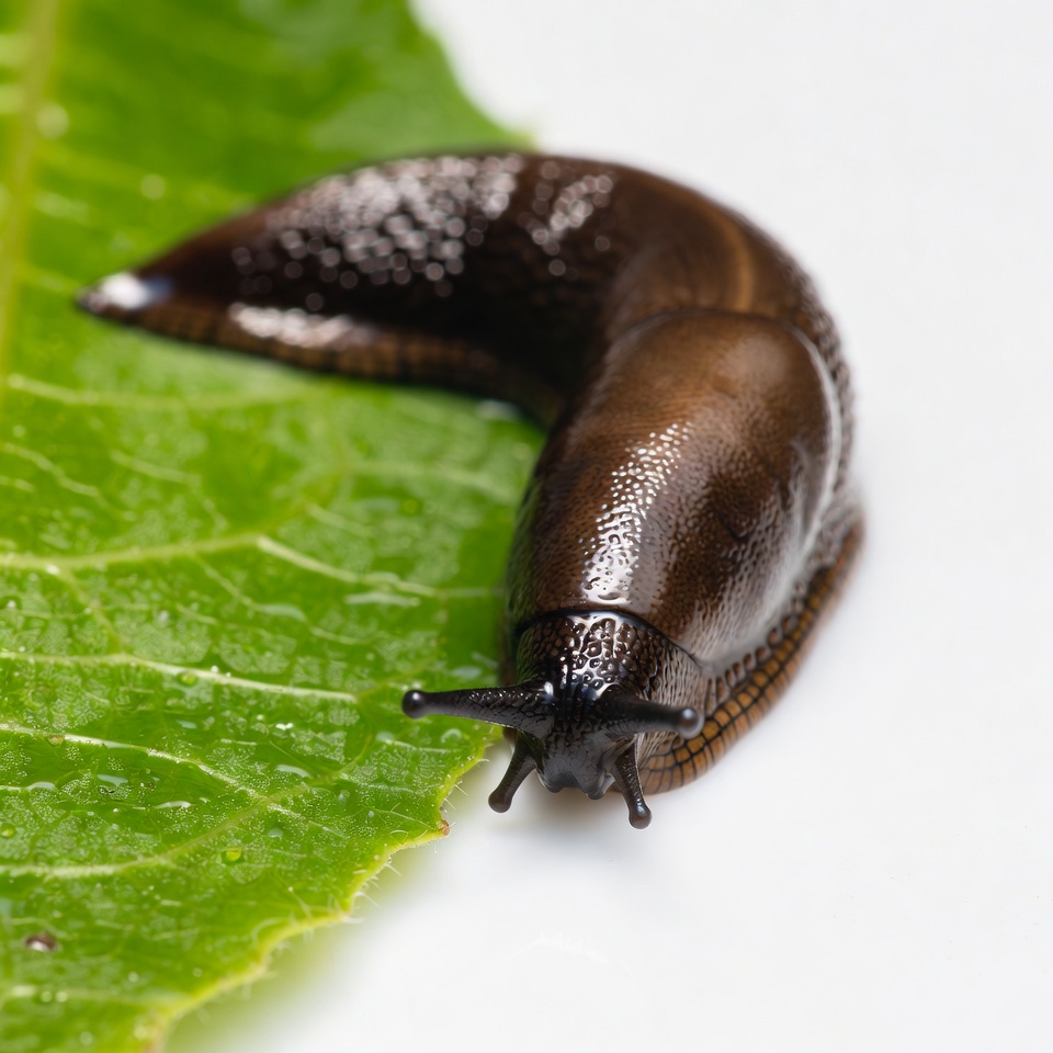 agriculture, animal, brown, close-up, crawling, damage, eating, garden, gastropod, green, invertebrate, isolated, leaf, mollusk, nature, pest, plant, slug, wet, wildlife
