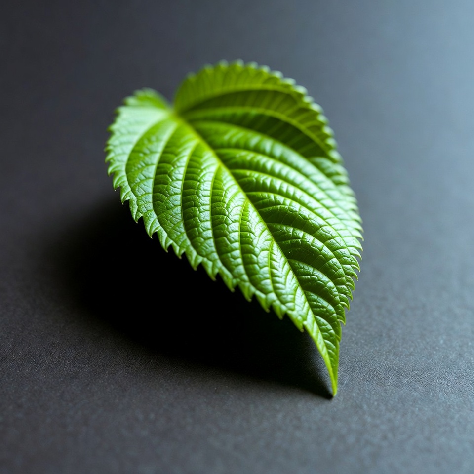 background, botanical, close-up, dark, detail, edge, flora, gray, green, growth, isolated, leaf, nature, pattern, plant, serrated, single, surface, vein, veins