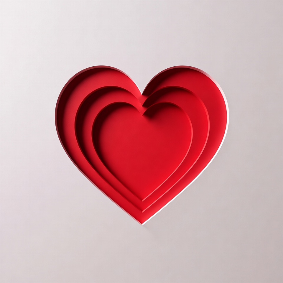 Several red heart shapes are layered on top of each other, creating depth against a simple background. The design emphasizes love and affection.