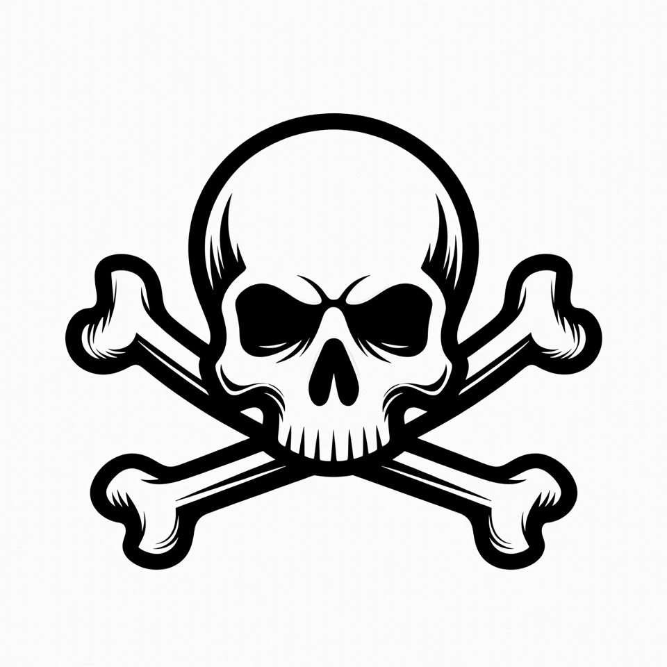 A black and white skull design with crossed bones beneath it. The graphic is simple and often associated with danger or warning signs.
