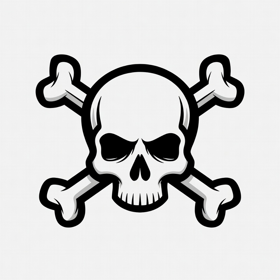 art, black, bones, crossbones, danger, death, design, graphic, hazard, icon, illustration, pirate, poison, print, skull, symbol, toxic, vector, warning, white