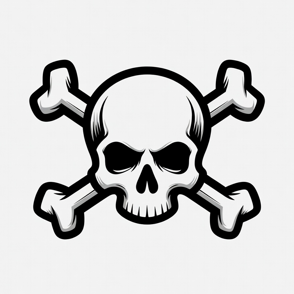 A skull with crossbones placed underneath is shown on a plain background. The illustration features bold lines and a simple design.