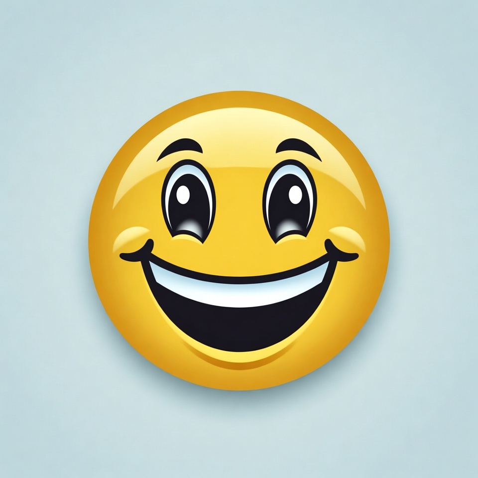 A round yellow smiley face shows a big smile and cheerful eyes. This design highlights happiness and joy in a simple way.