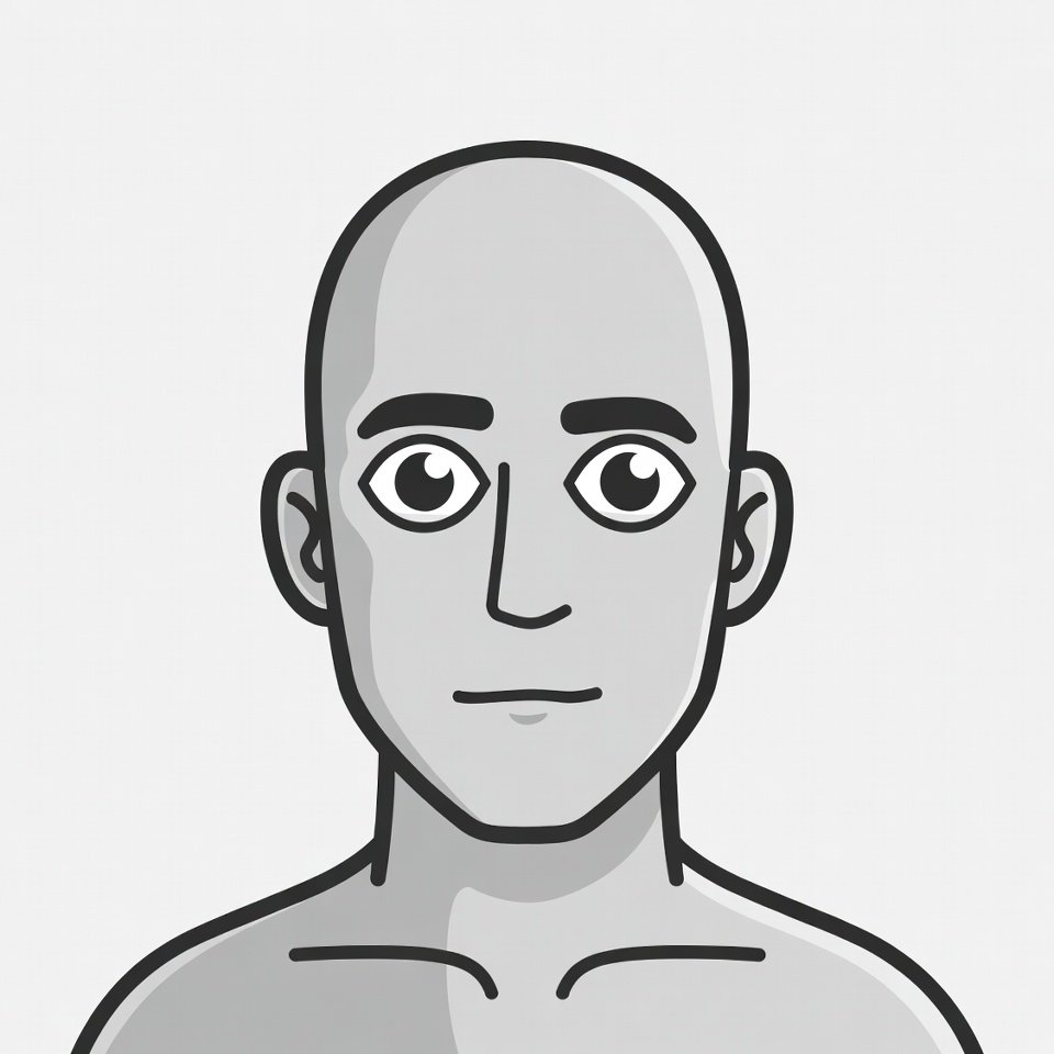 avatar, bald head, cartoon, clipart, gray tones, illustration, isolated background, large eyes, line art, male, man, neutral expression, profile, simple drawing, vector art, bald man