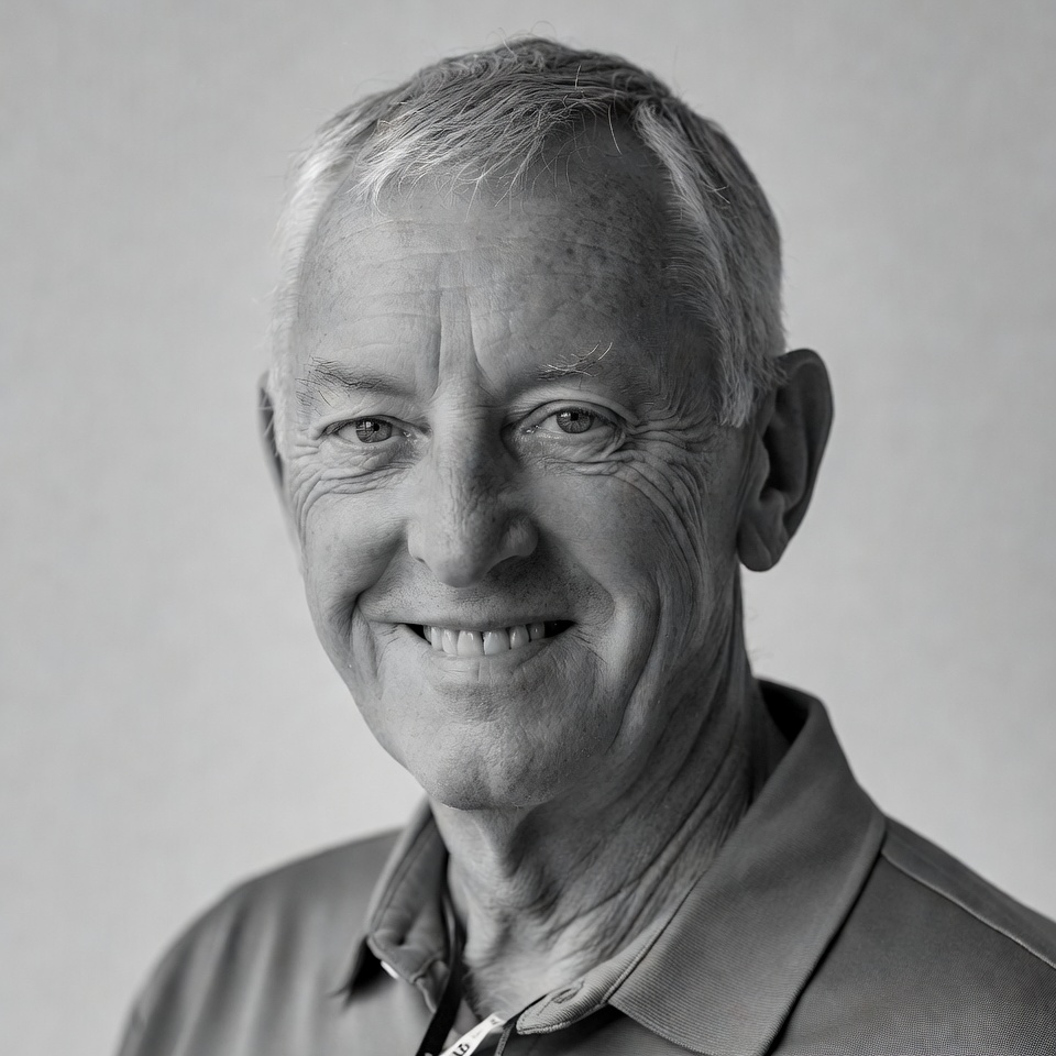 White, black and white, collared shirt, headshot, isolated background, male, monochrome, portrait, senior man, short hair, smiling face, smiling man, white hair, wrinkles, elderly man