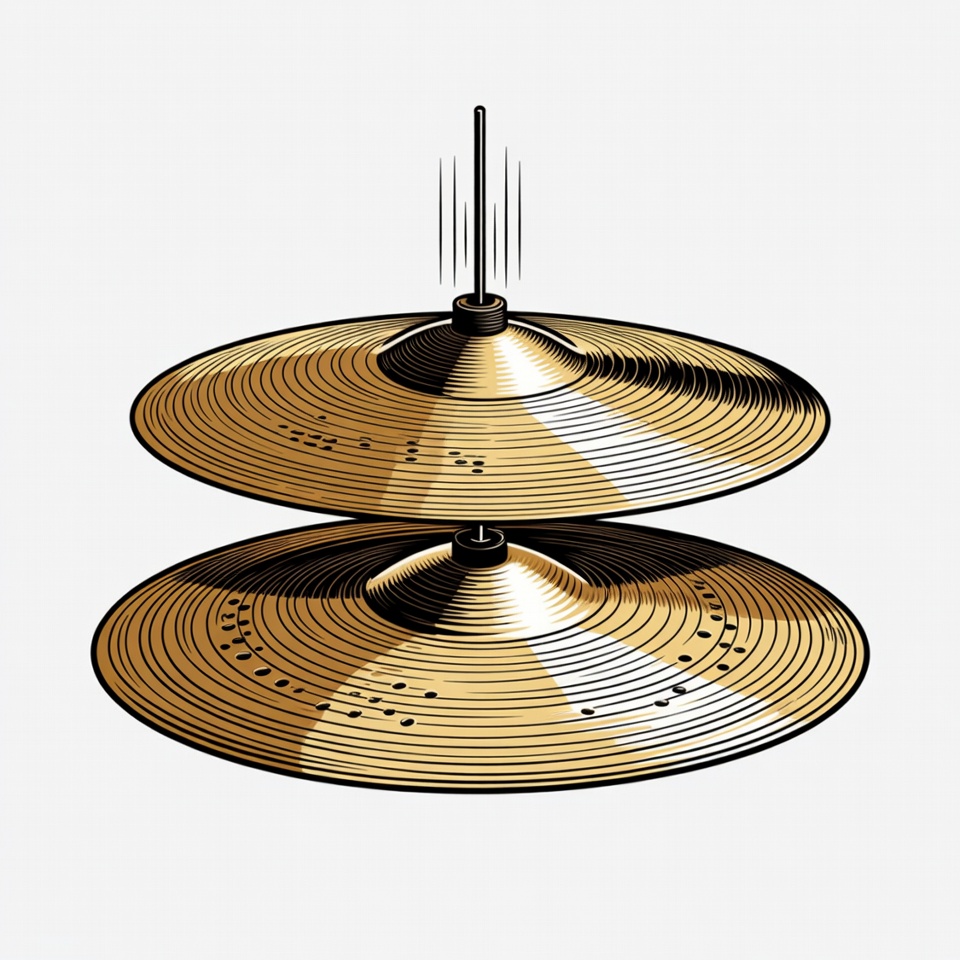 clashing cymbals, clipart, crash cymbals, drum cymbals, drummer equipment, golden cymbals, illustration, isolated background, motion lines, music instrument, musical notation, percussion, sound effect, vector art, cymbals