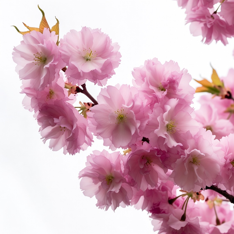 blooming flowers, blossoms, branches, delicate petals, floral, flower cluster, green leaves, isolated background, nature, petals, pink flowers, sakura, spring flowers, white background, cherry blossom