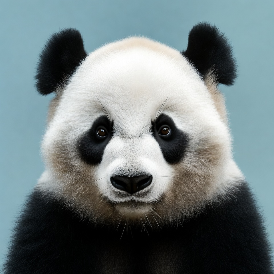 adorable, animal, baby panda, black eyes, black fur, blue background, closeup, cute panda, fluffy, giant panda, panda face, portrait, white fur, wildlife, panda