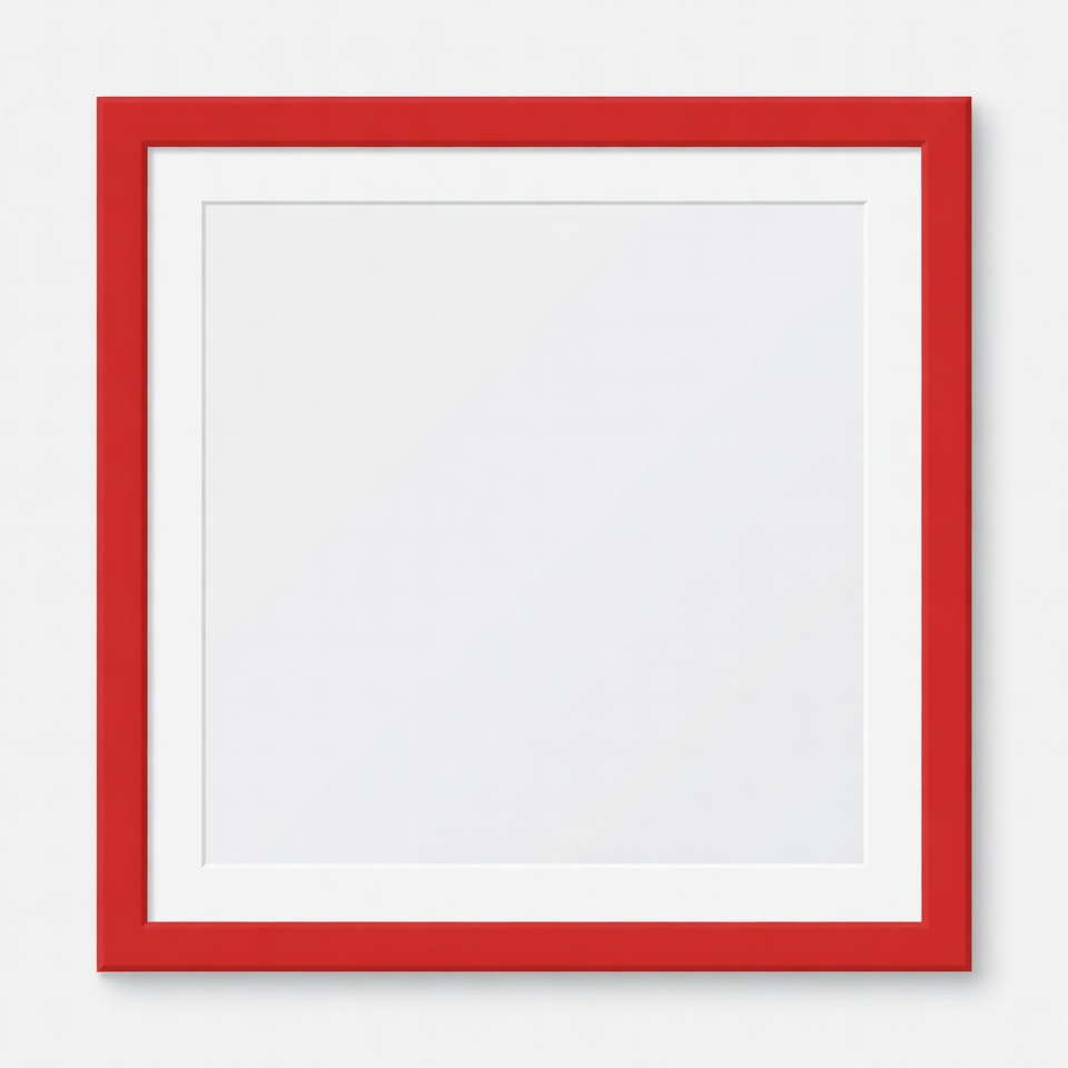 art frame, blank frame, display frame, empty frame, frame mockup, isolated background, photo frame, poster frame, red border, red frame, square frame, white background, white mat, wooden frame look, picture frame