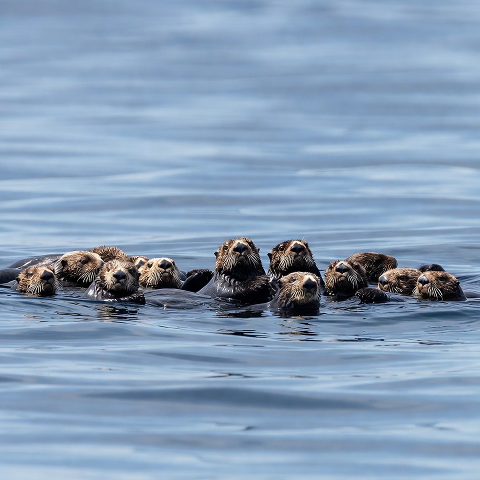 animals, blue water, cluster, floating, furry, group, heads, huddle, marine mammals, nature, ocean, paws, sea otters, water, wildlife, otters