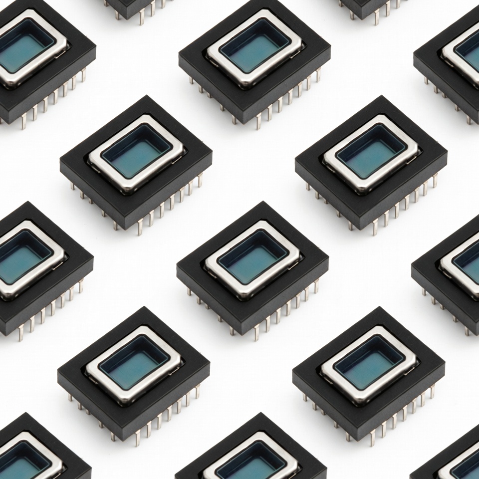 DIP package, LCD display, black chip, blue screen, chip array, circuit board, components, display chip, electronic parts, electronics, gold pins, grid pattern, hardware, integrated circuit, microchip, semiconductor, tech components, technology, white background, IC chips
