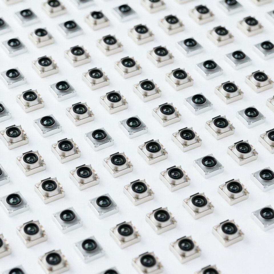 array, black lenses, close-up, components, electronics, grid, high-tech, macro photography, repetitive pattern, sensors, silver frames, small cameras, technology, uniform arrangement, camera lenses