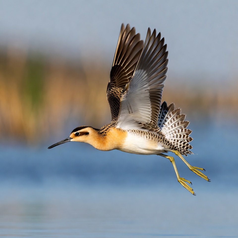 bird in flight, bird photography, black facial mask, blue sky, buff chest, feathers, flying bird, green reeds, nature, outdoors, plover bird, shorebird, soaring bird, spotted wings, wading bird, water background, water bird, wildlife, yellow legs, Little Ringed Plover