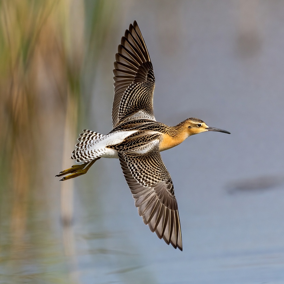 avian, bird, bird in flight, brown bird, curved bill, flying bird, isolated background, marsh, nature, reeds, sandpiper, shorebird, streaked feathers, wader, water, wetland, white belly, wildlife, wings spread, yellow legs, pectoral sandpiper