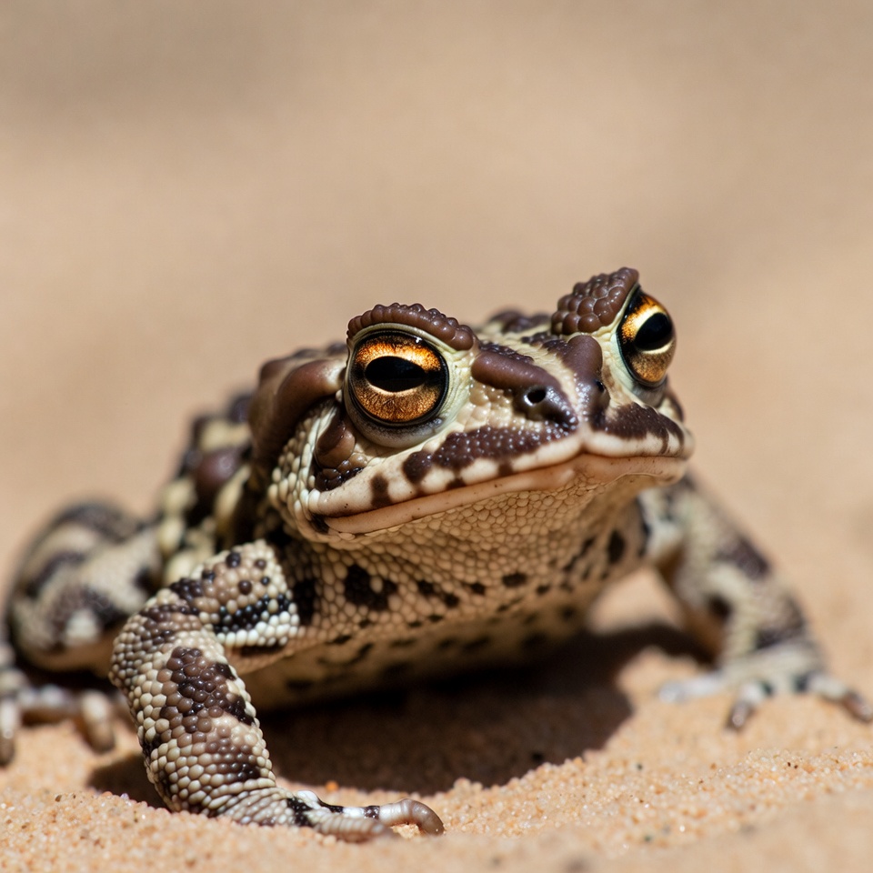 amphibian, animal, brown toad, bumpy skin, closeup, desert, frog, isolated background, nature, orange eyes, outdoors, sandy ground, spots, tan skin, textured skin, wildlife, toad