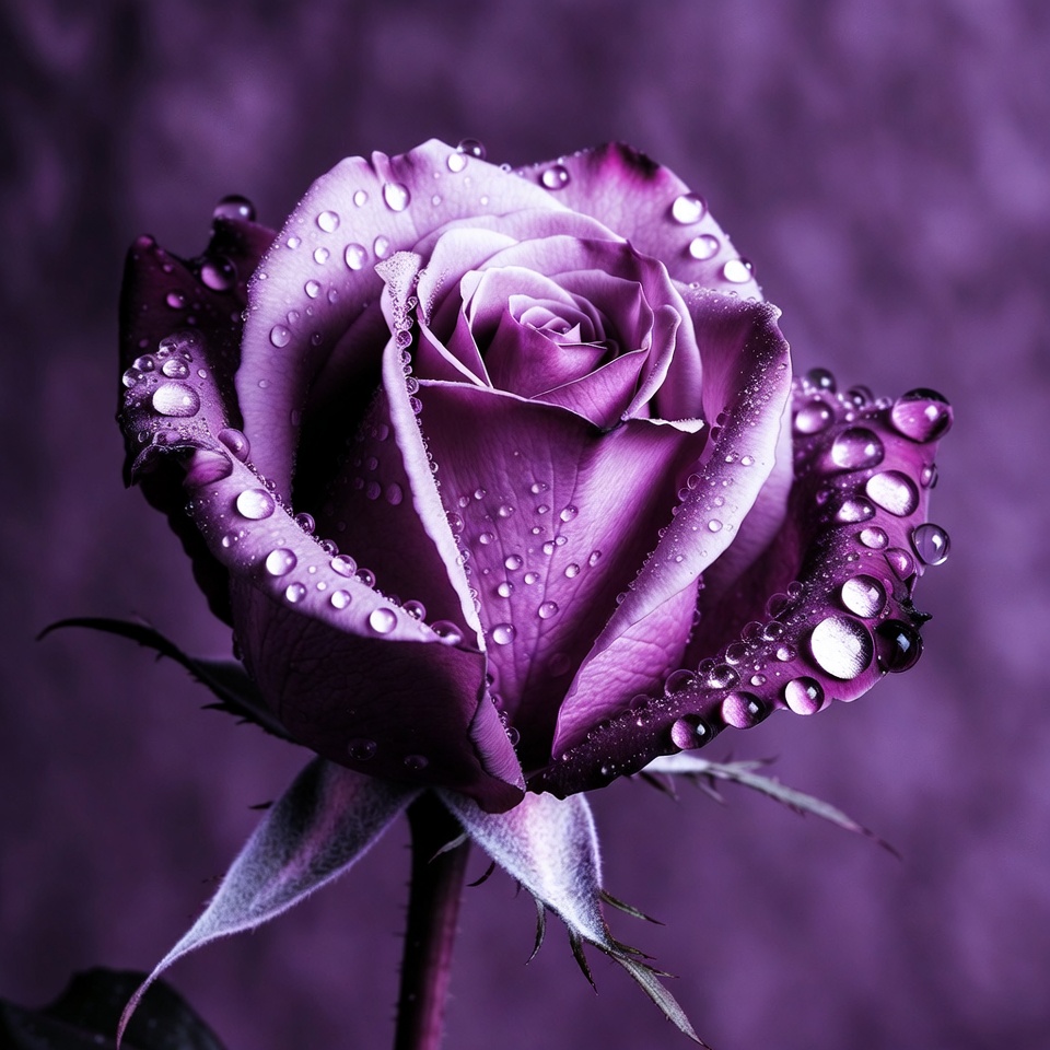 Purple Rose with Water Droplets