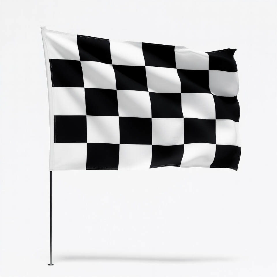 3D render, auto racing, black white flag, checkered pattern, finish line, flag graphic, flag pole, isolated background, motorsport flag, racing, racing flag, speedway flag, waving flag, white background, checkered flag