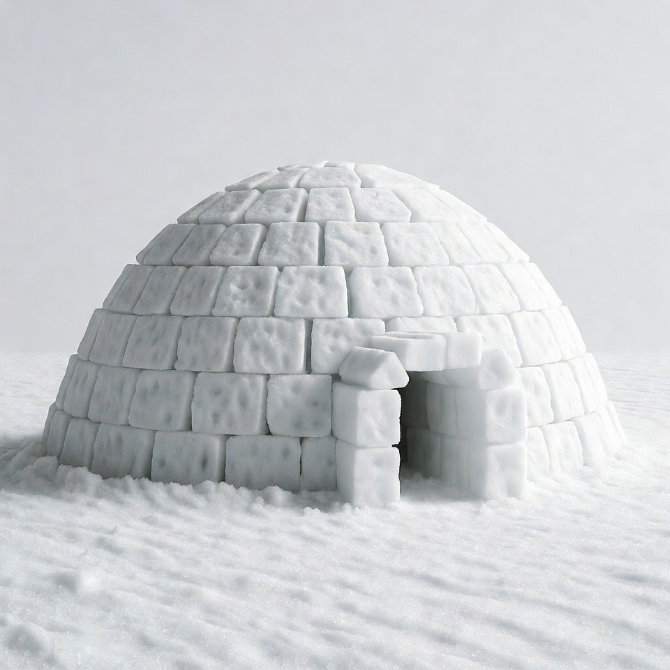 arch door, arctic, bricks, cold, dome, entrance, eskimo house, frozen, ice blocks, isolated, outdoor, shelter, snow, snow house, snow mound, snowy ground, structure, white background, winter, igloo