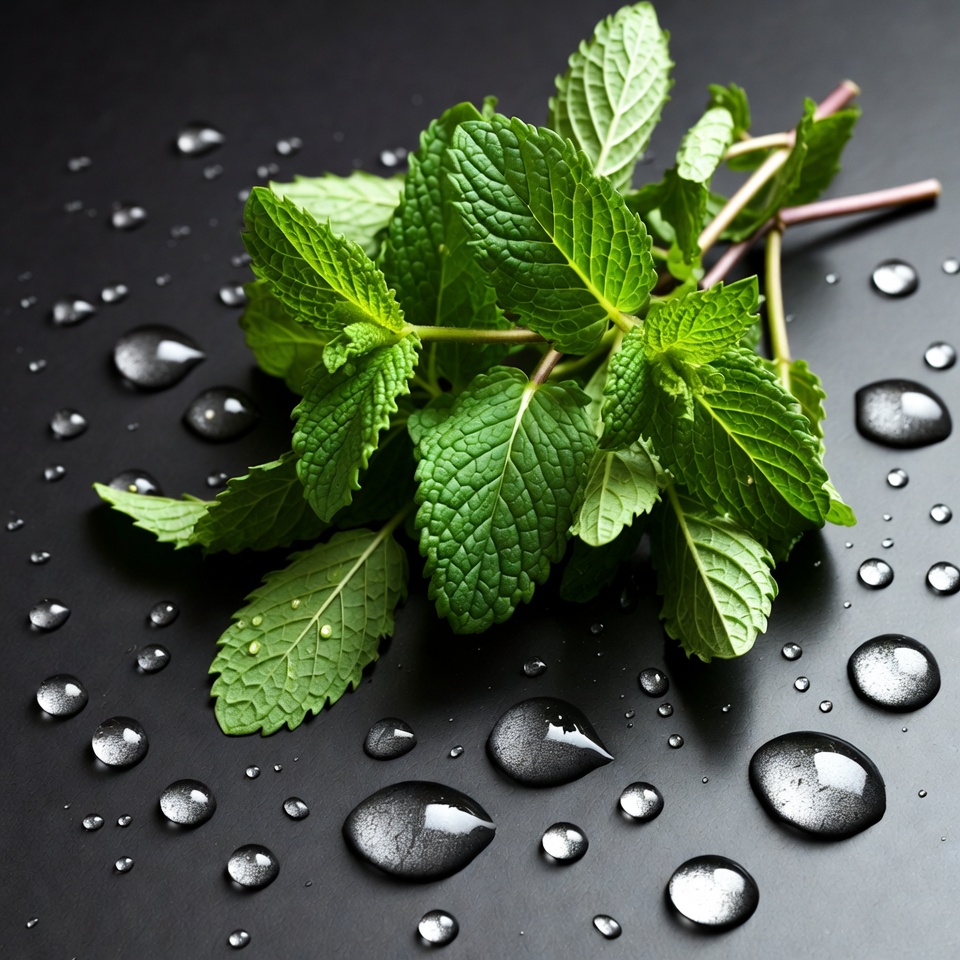 Fresh Mint Leaves with Water Droplets