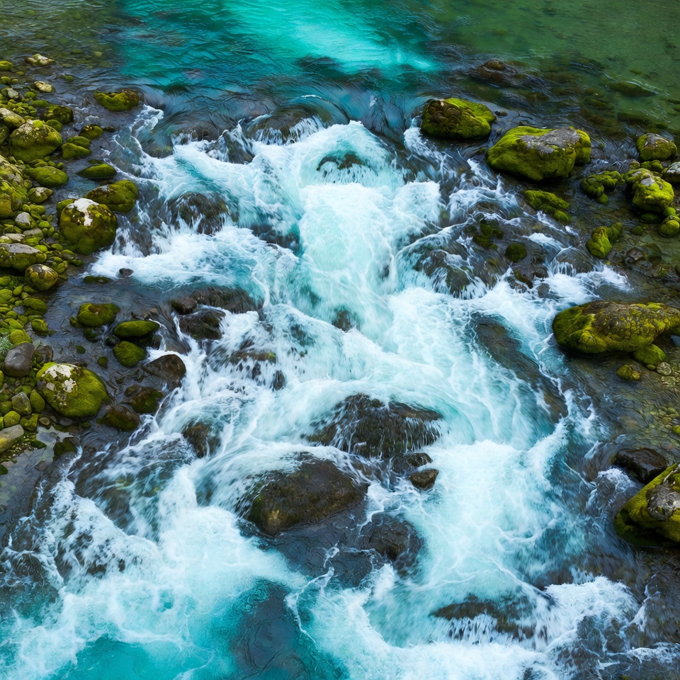 aquatic, blue green, boulders, brook, cascade, clear water, creek, environment, flowing water, freshwater, green moss, hydro, landscape, mossy rocks, nature, outdoor, rapid flow, rapids, rocks, scenery, stone, stream, turquoise water, waterway, white foam, wilderness, river